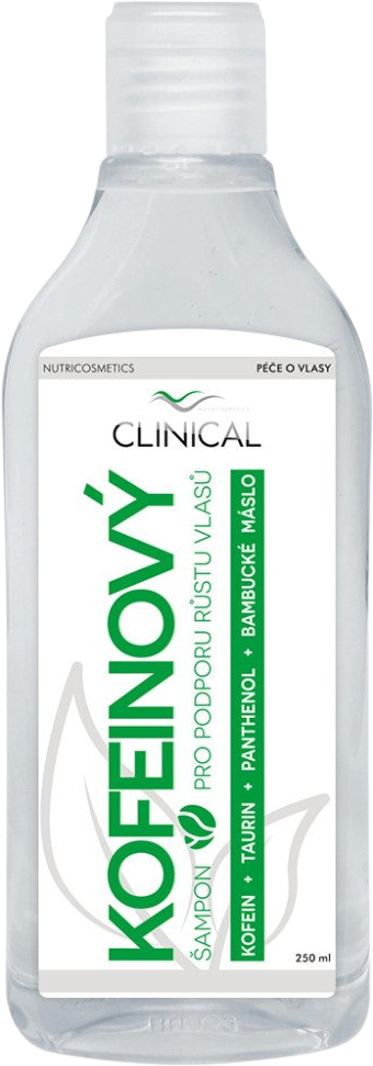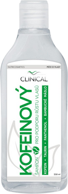 Kofeínový klinický šampón pomáha stimulovať vlasové korienky, podporuje rast vlasov a zvyšuje ich odolnosť. Šampón obsahuje aj ďalšie vyživujúce zložky - taurín, bambucké maslo a panthenol.