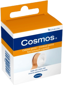 Hartmann cosmos Cievková pevná 2 5 cm x 5 m náplasť fixačná z textilnej tkaninyVšetko o produkteDoplňujúce informácieHodnotenie produktu- náplasť je určená na jednoduchú a spoľahlivú fixáciu obväzov a ovínadiel