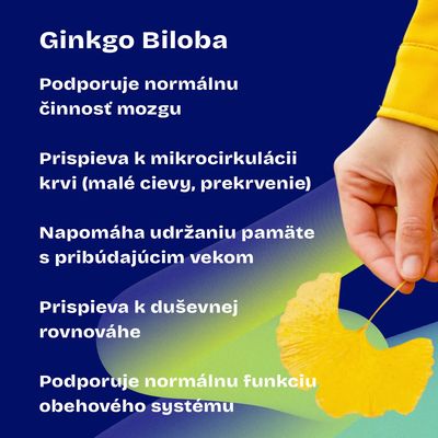 Účinná látka extrakt z Ginkgo biloba (24%/6%), Množstvo na deň (1 kapsula) 60 mg