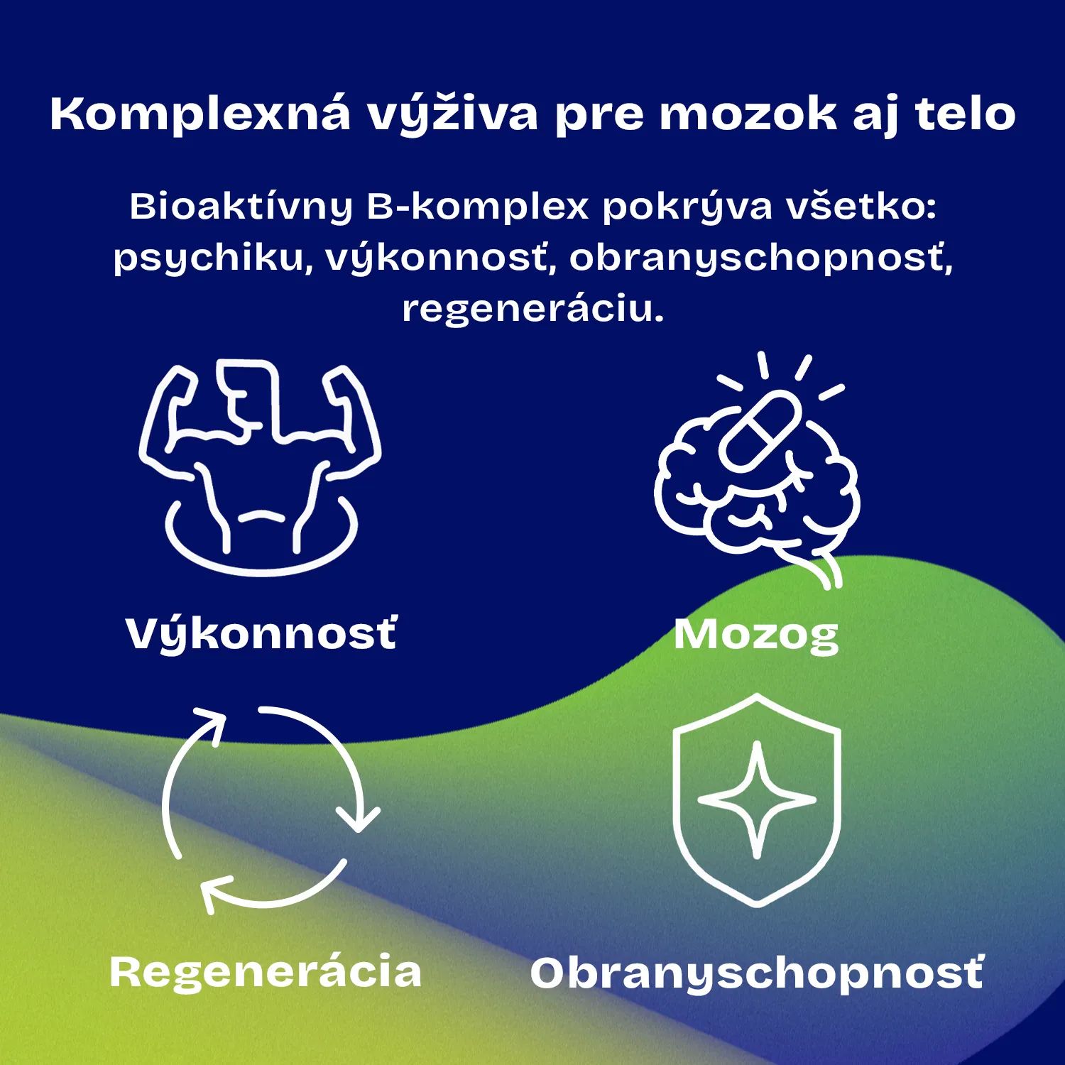 - 8 základných vitamínov skupiny B v bioaktívnych formách