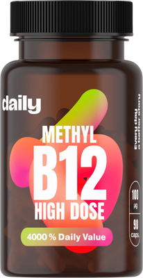 Methyl B12 High Dose by Daily obsahuje 100 mcg bioaktívnej formy vitamínu B12 – metylkobalamínu, ktorú telo dokáže okamžite využiť. Na rozdiel od bežnej formy (kyanokobalamínu) nie je potrebná žiadna premena, preto je ideálny pre osoby so zhoršeným vstrebávaním alebo s vyššou potrebou B12.Vitamín B12 prispieva k zníženiu únavy, normálnej činnosti nervového systému, tvorbe červených krviniek a energetickému metabolizmu.