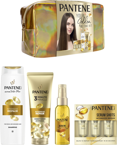 Sada štyroch produktov Pantene: olej, šampón, sérum v ampulkách a maska