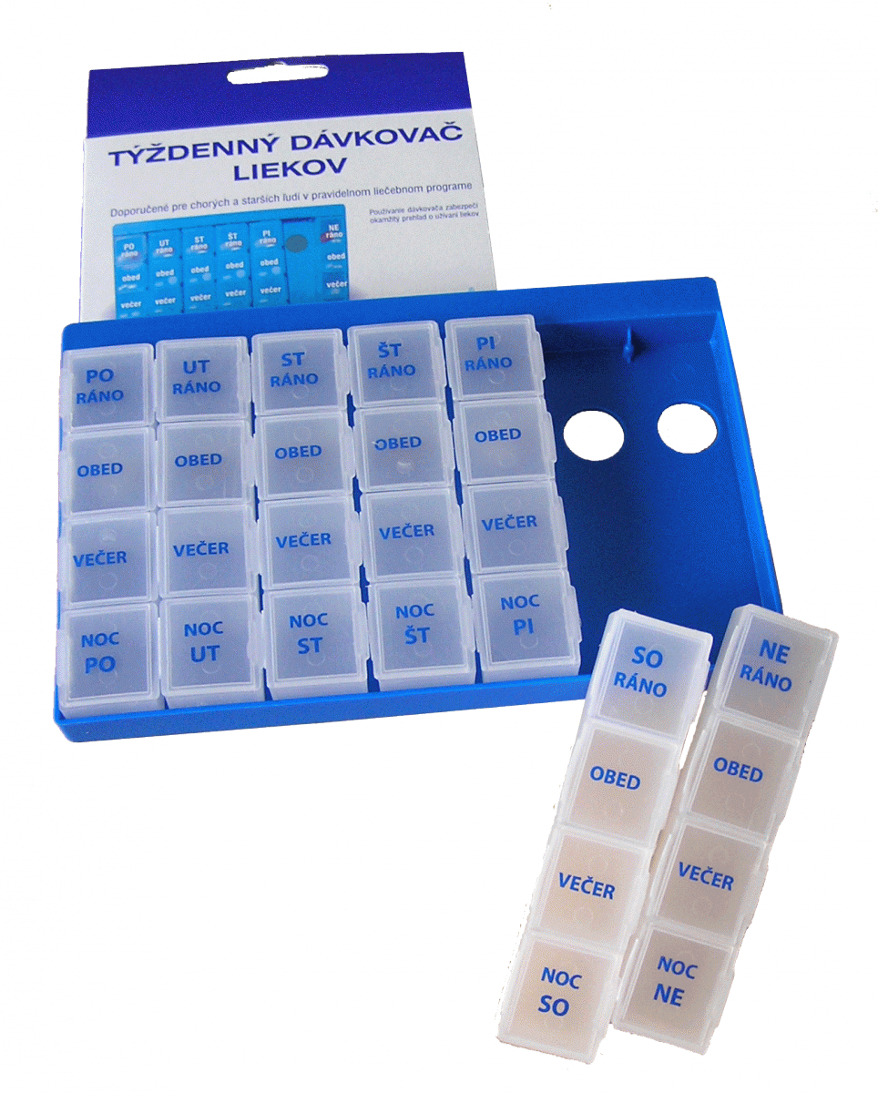 Dávkovače liekov ocení každý, kto denne užíva viac rôznych tabletiek. V dávkovači si pohodlne rozdelíte lieky podľa dňa v týždni, ale aj podľa toho, či máte liek užiť v ranných, poludňajších či večerných hodinách. Najlepšie počas nedele si nachystáte lieky na celý ďalší týždeň a užívanie liekov potom nezaberie viac ako 2 minúty.