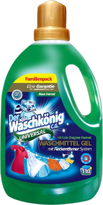 Gél je možné použiť v širokom rozsahu teplôt vody. Účinne perie už od 20 °C do 95 °C. Gél Der Waschkönig C.G. je k dispozícii v praktickom balení s objemom 3,305 L, čo postačí na 110 praní.