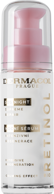 Dermacol Bio Retinol regeneračné nočné sérum 12 mlVšetko o produkteDoplňujúce informácieHodnotenie produktuToto výnimočné sérum intenzívne pôsobí počas noci, keď vaša pleť najviac potrebuje regeneráciu a obnovu. Bio retinol aktívne podporuje prirodzenú regeneráciu pleti a ceramidy dodávajú hĺbkovú hydratáciu a výživu, aby bola vaša pleť pevnejšia, pružnejšia a plná života. Každé ráno vás privíta hladšia, jemnejšia a žiarivejšia pleť. Pravidelné používanie nočného séra znižuje viditeľnosť jemných liniek, vrások a začervenania.
