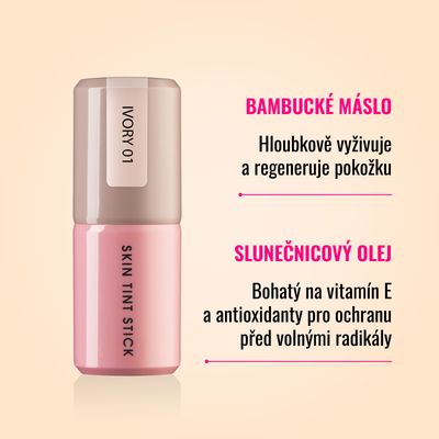 Multifunkčný make-up v tyčinke, to je Skin Tint. Je vhodný nielen na lokálnu aplikáciu, ale aj na zjednotenie celej pleti. Viac informácií