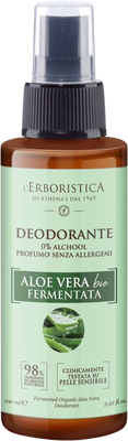 Erboristica Deodorant neobsahuje alkohol ani hydrochlorid hliníka. Ošetruje pokožku s ohľaduplnou jemnosťou. Dodáva pocit sviežosti, úľavy a pohodlia. Aplikuje sa bez použitia plynu. Použitím hyperfermentačnej technológie získava aloe vera nespočetné množstvo vylepšených kozmetických vlastností. Fermentácia je prírodný zlepšovák, ktorý premieňa jednotlivé zložky na silné živiny.
