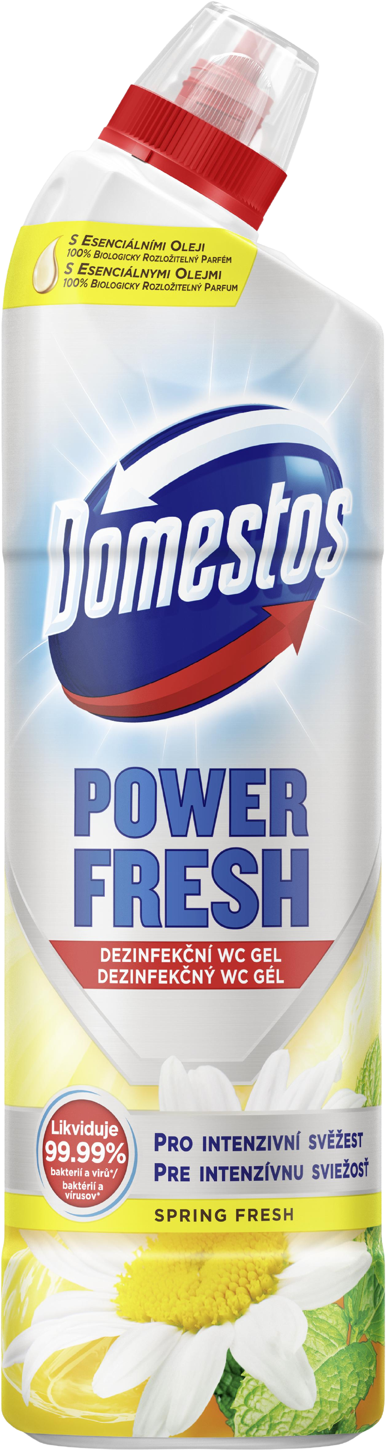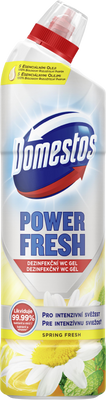 Čistiaci prostriedok DOMESTOS Power Fresh Spring Fresh je jedinečná domáca pomôcka pre hygienickú čistotu a sviežosť toalety. Dezinfekčný toaletný gél účinne čistí toaletnú misu a odstraňuje odolné nečistoty a vodný kameň. Zabíja 99,9 % známych baktérií. Vďaka inovatívnej viacprúdovej tryske si poradí so špinou aj na ťažko dostupných miestach.