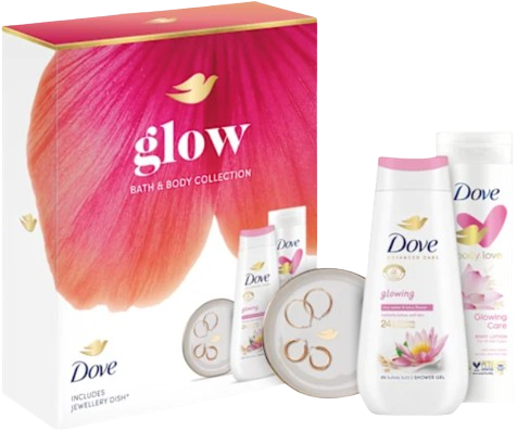 Hľadáte ten pravý darček pre Vašu blízku osobu? Stavte na istotu. Pripravili sme pre vás darček plný jemnosti a starostlivosti pre pokožku. Presne to je vianočný balíček Dove Glowing s miskou na šperky, ktorý obsahuje krémový sprchový gél, telové mlieko a darček. Viac informácií