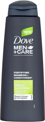Dove Men+Care 2v1 šampón Fresh&Clean 400 mlVšetko o produkteDoplňujúce informácieHodnotenie produktuŠampón Dove Men+Care Fresh Clean efektívne čistí pokožku hlavy, dôkladne umýva vlasy a navracia im prirodzenú krásu.