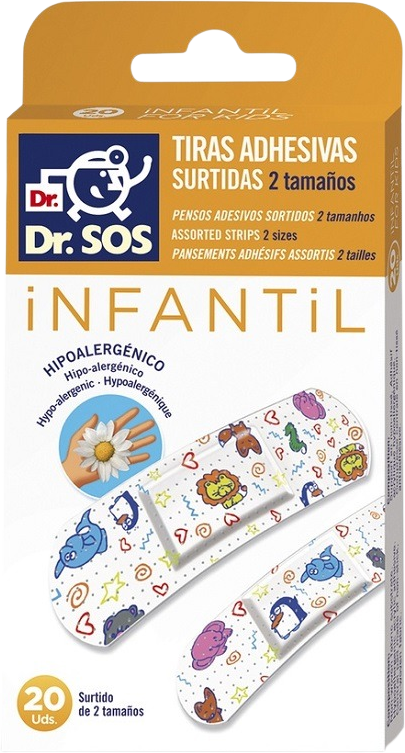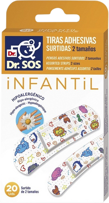 Dr. Sos Infantil prúžky mix vodeodolné 20 ksVšetko o produkteDoplňujúce informácieHodnotenie produktuBalenie obsahuje 20 kusov náplastí s detskými motívmi v 2 veľkostiach: 12 kusov o veľkosti 72 x 19 mm a 8 kusov o veľkosti 57 x 16 mm.