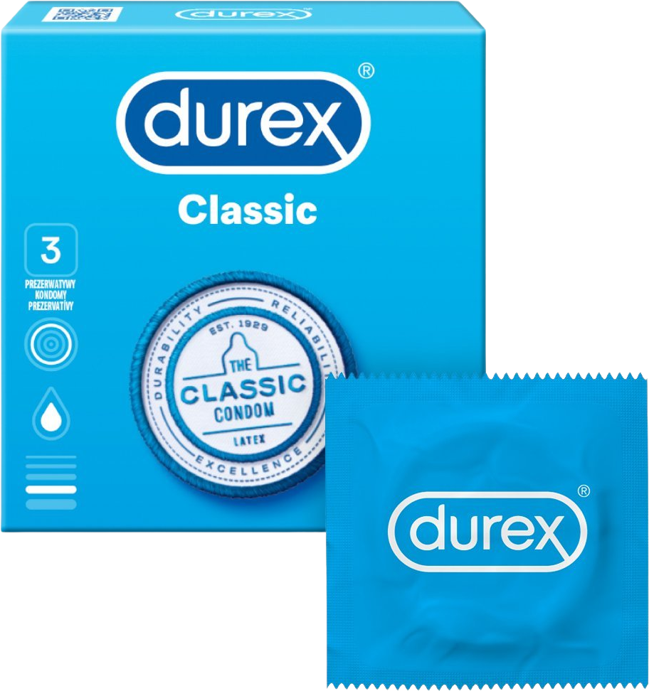 Durex ponúka tradične vysokú kvalitu priehľadných kondómov. Vďaka Easy-On tvaru sa kondóm jednoducho nasadzuje a je príjemnejší pri používaní. Kondómy Durex Classic sú vyrábané špeciálnym spôsobom, vďaka ktorému príjemnejšie voňajú. Nič vás tak nebude nepríjemne vyrušovať od úplného uvoľnenia a vychutnania si vašich intímnych zážitkov.