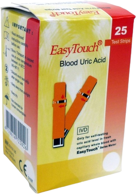 Pásiky slúžia na meranie kyseliny močovej. Každé balenie pásikov obsahuje 25 kusov a kódovací čip. Pásiky sú samonasávacie a stačí malá kvapka krvi.