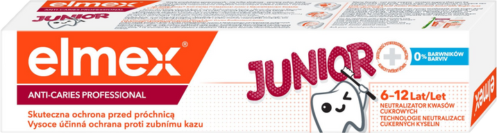Deti, ktoré používajú zubnú pastu elmex® Anti-Caries Professional Junior, pomáhajú svojim zubom zostať zdravými. Táto detská zubná pasta je založená na technológii neutralizácie cukrových kyselín, ktoré spôsobujú zubný kaz. Technológia neutralizácie cukrových kyselín s arginínom, vápnikom a fluoridom podporuje remineralizáciu zubov. Viac informácií