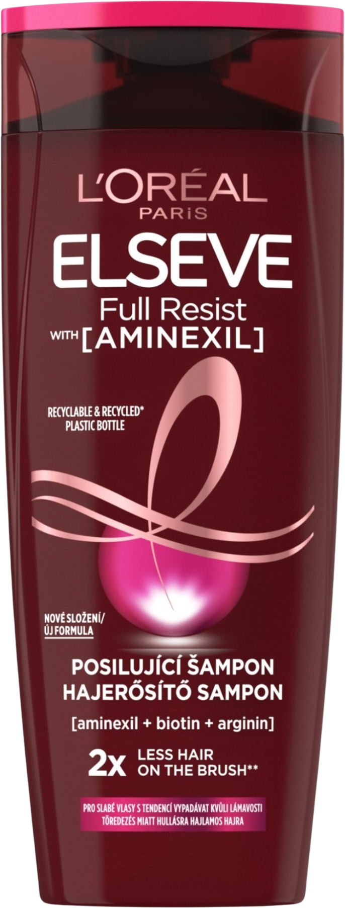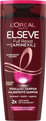 L'Oréal Paris Elseve Elseve Full Resist šampón 250 mlVšetko o produkteDoplňujúce informácieHodnotenie produktuStres, sezónne zmeny, česanie a styling… to všetko ovplyvňuje pocit oslabených, tenších vlasov, ktoré majú tendenciu skončiť na vašom hrebeni. Trénujte odolnosť vašich vlasov s posilňujúcim radom Full Resist pre slabé vlasy s tendenciou vypadávať. Vráťte im späť ich silu vďaka nášmu posilňujúcemu šampónu. Nové zloženie je obohatené o Aminexil a výživné zložky pre vlasy Biotín + Arginín, predstavuje tak ideálnu kombináciu aktívnych látok na posilnenie oslabených vlasov.