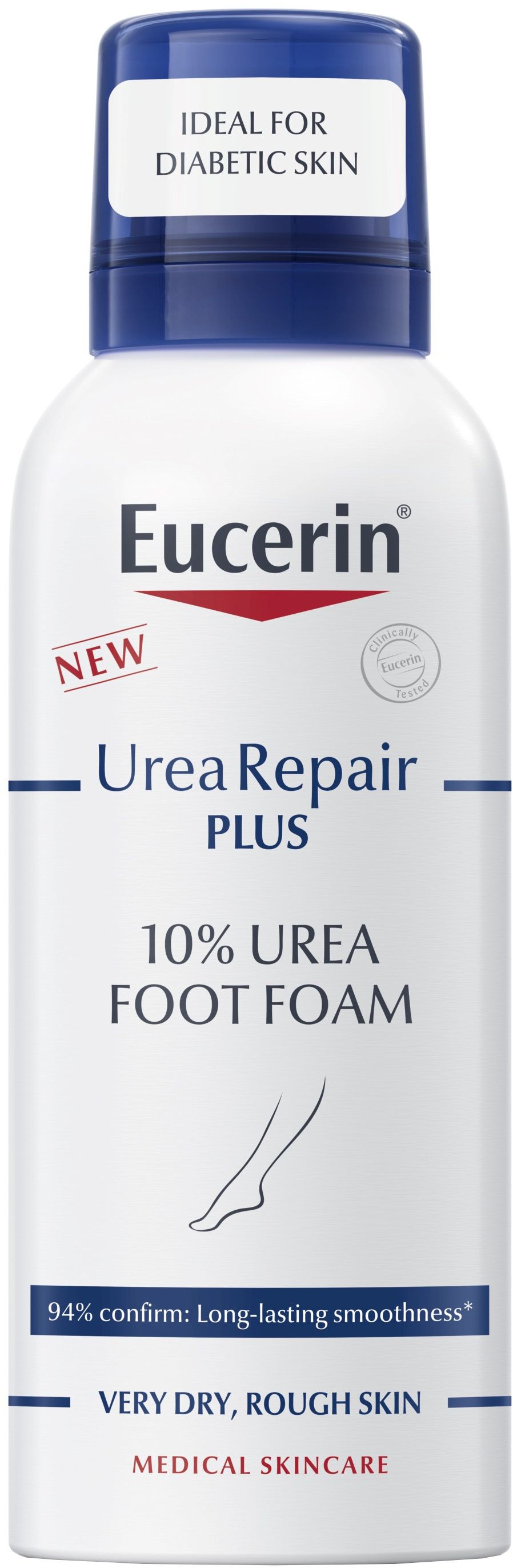 Eucerin UreaRepair PLUS Pena na nohy 10% urea 150 mlVšetko o produkteDoplňujúce informácieHodnotenie produktuKlinické a dermatologické štúdie preukázali veľmi dobrú účinnosť a kožnú znášanlivosť na suchej pokožke. Vhodná pre pokožku diabetikov, pri xeróze, psoriáze a pre zrelú pokožku. Vhodná aj ako doplnková starostlivosť.