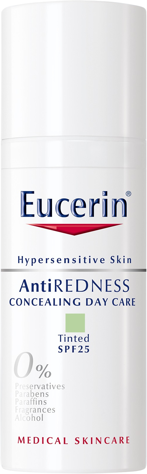 Eucerin Neutralizujúci denný krém Anti-REDNESS bol vyvinutý špeciálne pre hypersenzitívnu pleť a pleť so sklonmi k rosacei a kuperóze. Pri aplikácii na vyčistenú pleť okamžite upokojuje podráždenie a skrýva viditeľné začervenanie. Toto inovatívne zloženie kombinuje dve účinné látky - SymSitive* a licochalcon A.