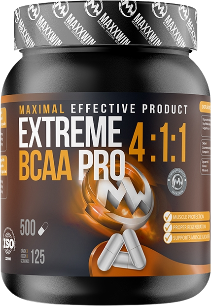 Maxxwin Extreme BCAA PRO 4:1:1 500 kapsúl. 500 ksVšetko o produkteDoplňujúce informácieHodnotenie produktuBCAA pre opravdových profíkov! Vedecky overený pomer 4:1:1 (L-Leucín, L-Izoleucín, L-Valín) zabezpečí maximálnu ochranu vašich svalov, mnohonásobne urýchli regeneráciu a podporí rast svalovej hmoty. Podaním pred a po výkone zabezpečíte pre telo tie najlepšie podmienky, vydržíte tak trénovať dlhšie, efektívnejšie a svaly porastú skoro samé! EXTREME BCAA PRO 4:1:1 sú esenciálne vetvené aminokyseliny, ktoré telo nevyhnutne potrebuje dopĺňať pri fyzickej záťaži. Tieto bcaa boli navrhnuté pre profesionálnych športovcov, ale môžu byť užívané aj amatérskymi športovcami! Vhodné aj do redukčných diét. Trénuj TVRDO, Trénuj DLHO, Trénuj s EXTREME BCAA PRO 4:1:1!