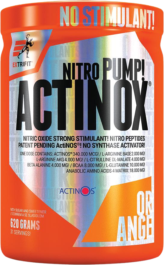 Nový Actinox® obsahuje viacero látok z radu NO stimulantov. Výrobca pôvodného ActiNOS® vyvinul novú formu tejto zložky, ktorá je oveľa koncentrovanejšia (označovaná aj ako CFTM Nitro P), kde takáto malá dávka nitro peptidov stačí na vysoký účinok! Inovatívny Actinox® využíva aj sladidlo z rastliny stévia, ktoré je prírodného pôvodu.