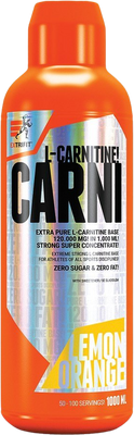 Extrifit Carni 120000 Liquid citron - pomeranč 1000 mlVšetko o produkteDoplňujúce informácieHodnotenie produktuCarni Liquid 120000 mg obsahuje veľmi silnú dávku L-karnitínu (120 g vo fľaši, 1200 mg v 10 ml). Karnitín je látka tradične využívaná mnohými športovcami najmä v programoch na zníženie hmotnosti.