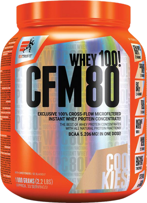 Extrifit CFM Instant Whey 80 cookies 1000 gVšetko o produkteDoplňujúce informácieHodnotenie produktuOvocné príchute obsahujú aj pomleté kúsky 100 % ovocia. To všetko so siedmimi tráviacimi enzýmami, sladidlom z rastliny stévia, bez chemických farbív a so zárukou, že bielkovinová zložka je 100% najkvalitnejší instantný srvátkový proteínový koncentrát CFM z Európskej únie. Výsledný produkt je plne instantný (= ľahko rozpustný), úplne bezprašný, vysoko stráviteľný a využiteľný. Navyše v novom praktickom obale a novom balení.