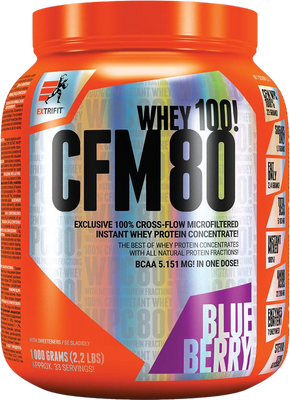 Extrifit CFM Instant Whey 80 borůvka 1000 gVšetko o produkteDoplňujúce informácieHodnotenie produktuProfessional WPC 80 je od marca 2014 v novom balení, s novým a ešte lepším zložením a novým názvom! V čom je nová CFM Instant Whey 80 ešte lepšia ako jej už veľmi obľúbený predchodca? Má oveľa lepšiu krémovitosť a lahodnú konzistenciu a je k dispozícii v siedmich nových absolútne vynikajúcich a vylepšených príchutiach na samej hranici možností tohto typu proteínu CFM. Ovocné príchute obsahujú aj pomleté kúsky 100 % ovocia. To všetko so siedmimi tráviacimi enzýmami, sladidlom z rastliny stévia, bez chemických farbív a so zárukou, že bielkovinová zložka je 100% najkvalitnejší instantný srvátkový proteínový koncentrát CFM z Európskej únie. Výsledný produkt je plne instantný (= ľahko rozpustný), úplne bezprašný, vysoko stráviteľný a využiteľný. Navyše v novom praktickom obale a novom balení.