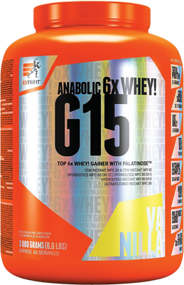 Extrifit G 15 Anabolic Gainer vanilka 3000 gVšetko o produkteDoplňujúce informácieHodnotenie produktuG15 Anabolic Gainer je pokročilejšia a vylepšená verzia obľúbeného gaineru G 15! Je to vynikajúci produkt pre všetkých, ktorí chcú veľmi rýchlo zvýšiť hmotnosť a objem svalov. Vylepšili sme proteínovú zložku, takže teraz obsahuje ten najlepší proteín vôbec! Výhradne srvátkové (srvátkové) koncentráty a izoláty a 3 hydrolyzované srvátkové bielkoviny s vynikajúcou využiteľnosťou pre rast svalov. G 15 obsahuje 15 % špičkových bielkovín a 71 % kvalitných sacharidov s postupným nástupom účinku.