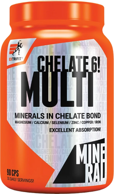 Extrifit Multi Mineral Chelate 6!, 90 kapsúlVšetko o produkteDoplňujúce informácieHodnotenie produktuChelátové formy minerálov zaručujú ich vynikajúcu využiteľnosť v ľudskom organizme. Je určený pre širokú verejnosť aj výkonnostných športovcov.