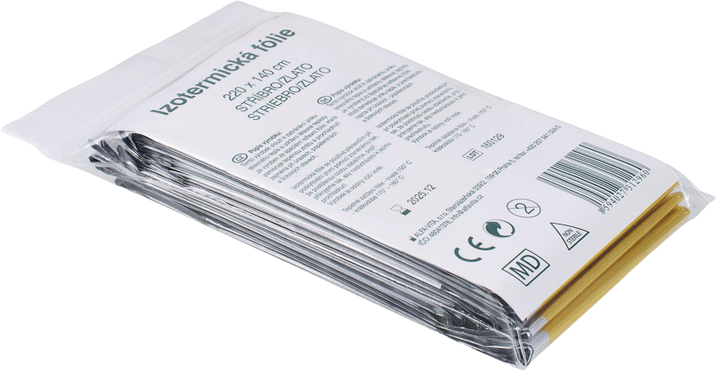 Fixaplast Izotermická fólia 220 x 140 strieborná/zlatá.Všetko o produkteDoplňujúce informácieHodnotenie produktuJe vyrobená z špeciálnej reflexnej fólie, ktorá zamedzuje tepelným stratám a vychladnutiu najmä pri úrazoch, popáleninách a šokových stavoch. Izotermická fólia sa používa najmä pri poskytovaní prvej pomoci zranenému tak, že dotknutú osobu zabalíme, popr. pokryjeme, aby nedochádzalo k jej vychladnutiu.