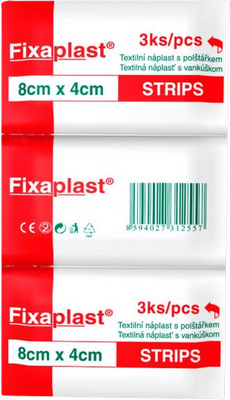 Fixaplast Strips náplasť 8 x 4 cm textilná s vankúšikom 3 ksVšetko o produkteDoplňujúce informácieHodnotenie produktu