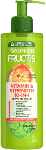 Garnier Fructis Vitamin & Strength 10v1 Bezoplachová starostlivosť, 400 mlVšetko o produkteDoplňujúce informácieHodnotenie produktuVo svojej viacúčelovej receptúre bezoplachového krému spája Fructis účinky červeného pomaranča s derivátom vitamínu C a biotínom pre posilnenie vlasov, zmiernenie ich vypadávania v dôsledku lámavosti a lepšiu poddajnosť a úpravu.