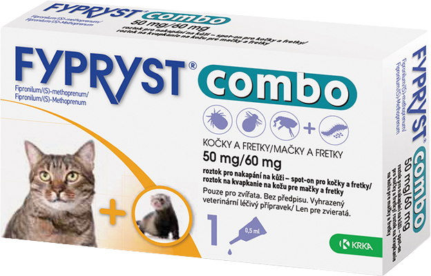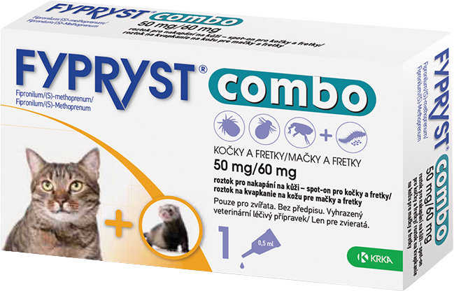 Fypryst Combo Spot on je roztok na infekciu blchami, na súvisiace infekcie kliešťami a/alebo srstiarkami pre mačky a fretky. Viac informácií