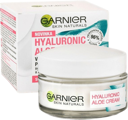 GARNIER Skin Naturals Hyaluronic Aloe je denný hydratačný krém s gélovou textúrou a výťažkom z Aloe Vera. Vďaka tejto konzistencii je ľahký a jemný a rýchlo sa vstrebáva. Poskytuje pleti sviežosť a jas a pravidelným používaním zvyšuje pružnosť pleti, udržuje vlahu a zaisťuje zdravý vzhľad. Zloženie z 96 % prírodných látok okrem výťažku z aloe obsahuje tiež kyselinu hyalurónovú, ktorá pleti dodáva až 48 hodín hydratácie.