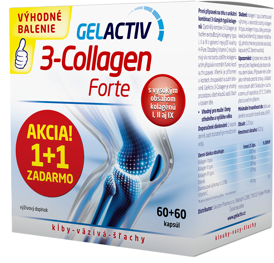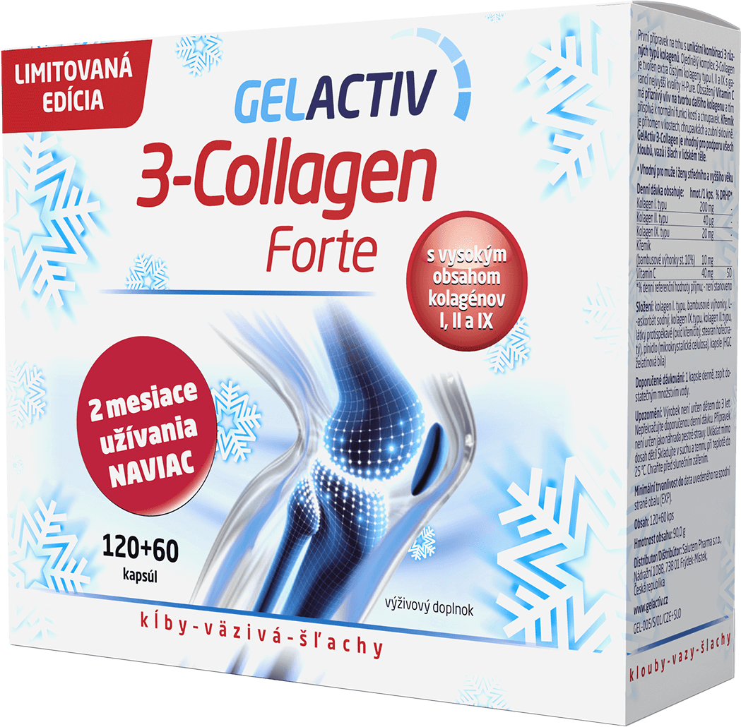 Bolí vás pohyb? Pomôžte si od bolesti kĺbov a kostí spoľahlivo a raz a navždy. Vyskúšajte GelActiv - prvý a jediný prípravok s tromi typmi kolagénov pre vaše zdravé kĺby. Môžete ich tiež užívať preventívne v čase, keď sa objavia prvé známky bolesti kĺbov či kostí. Obsiahnutý Vitamín C má priaznivý vplyv na tvorbu ďalšieho kolagénu a tým prispieva k normálnej funkcii kostí a chrupaviek. GelActiv navyše obsahuje kremík z organických zdrojov (bambusové výhonky) na tvorbu kolagénu a ukladanie vápnika.