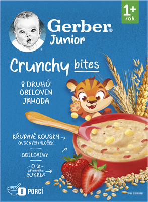 Gerber Junior nemliečna jahodová kaša s chrumkavými kúskami je lahodnou kombináciou 8 druhov obilnín doplnených jahodovými vločkami, ktoré jej dodávajú prirodzene sladkú chuť. Viac informácií