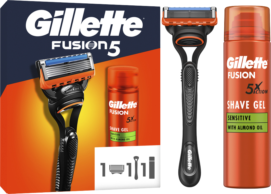 Gillette 5 Darčeková sada - holiaci strojček a gél na holenieVšetko o produkteDoplňujúce informácieHodnotenie produktuDarčeková súprava Gillette Fusion5 ponúka kompletný zážitok z holenia od začiatku až do konca. Súprava obsahuje holiaci strojček Gillette Fusion5 a hydratačný gél na holenie Gillette Fusion5 Ultra Moisturizing. Gél na holenie dodáva pokožke intenzívnu hydratáciu a ochranu, čím zabraňuje podráždeniu. Holiaci strojček Fusion5 je vybavený piatimi čepieľkami ostrými ako britva, ktoré znižujú trenie a poskytujú hladké a dlhotrvajúce oholenie, zatiaľ čo ergonomická rukoväť zlepšuje ovládanie na presné nastavenie. Špeciálna zarovnávacia čepeľ na zadnej strane hlavy umožňuje starostlivo oholiť aj ťažko dostupné miesta. Lubrikačný pásik tiež uľahčuje sklz čepieľok a poskytuje väčšie pohodlie.