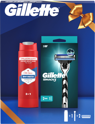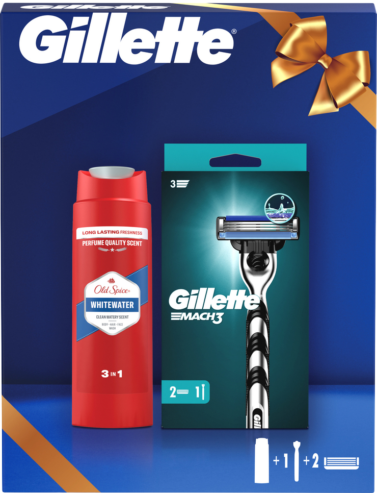 Darčeková súprava Gillette: pánsky holiaci strojček Gillette Mach3 s 2 náhradnými čepieľkami + Old Spice Whitewater 3 v 1. Viac informácií