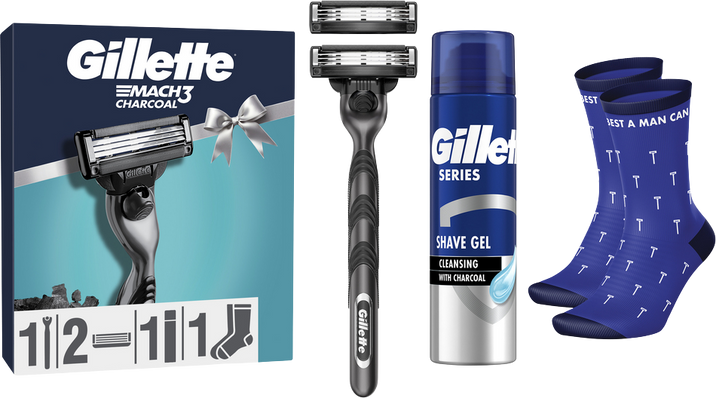 - Obsahuje pánsky holiaci strojček Gillette Mach3 Charcoal a čistiaci gél Gillette Series Charcoal