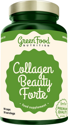 GreenFood Nutrition Collagen Beauty Forte 90 kapsúlVšetko o produkteDoplňujúce informácieHodnotenie produktuEnzymaticky hydrolyzovaný značkový kolagén Viscofan® s vysokou biologickou hodnotou a vstrebateľnosťou. Kolagénové hydrolyzáty (kolagénové peptidy Viscofan®) sa vyrábajú zo studenovodných rýb, najmä z lososa a tresky, v niekoľkostupňovom procese, ktorý zahŕňa želatinizáciu a následnú enzymatickú hydrolýzu natívneho kolagénu, čím sa získavajú peptidy s priemernou molekulovou hmotnosťou (SMW) približne 3 kDa. Takáto nízka molekulová hmotnosť sa dá dosiahnuť len studenou hydrolýzou rybieho kolagénu. Takáto nízka molekulová hmotnosť je dôležitá pre vstrebateľnosť kolagénu. Kolagén sa však v ľudskom tele vstrebáva len vtedy, ak telo prijíma dostatok vitamínu C, preto Collagen Beauty Forte obsahuje extrakt z aceroly a vitamín B3.