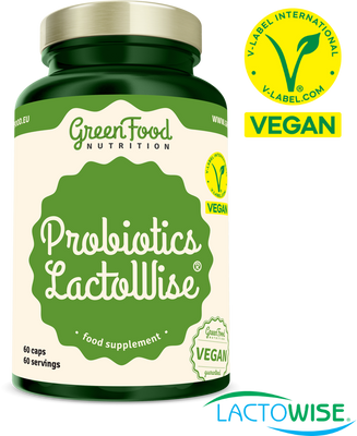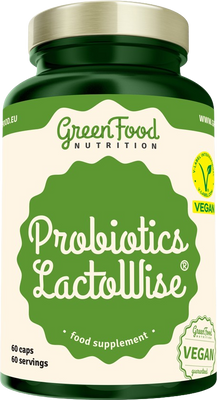 GreenFood Nutrition Probiotics LactoWise® 60 kapsúlVšetko o produkteDoplňujúce informácieHodnotenie produktuLactoWise® je „múdry“ - šikovná kombinácia stabilných probiotík a prírodnej rozpustnej vlákniny (prebiotikum) v kyselinovzdornej kapsule GAR-MA (skratka pre Gastric Acid Resistant – Methacrylate Copolymer), ktorá poskytuje ochranu živým baktériám pred pôsobením žalúdočných kyselín. Ide o symbiotický kombinovaný produkt obsahujúci probiotickú a prebiotickú zložku, t. j. LactoSpore® v kombinácii s galaktomannanom - vlákninou zo semien senovky gréckej (Trigonella foenum-graecum) s prebiotickou aktivitou. LactoSpore® je stabilná spórotvorná baktéria črevného mikroorganizmu Bacillus Coagulans, ktorá produkuje len potrebnú kyselinu L(+) mliečnu.