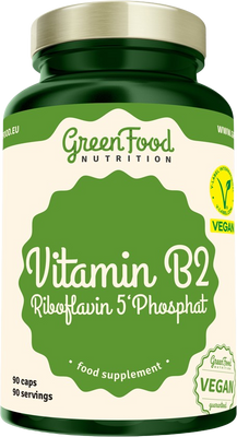 GreenFood Nutrition Vitamin B2 Riboflavin 5'Phosphat 90 kapsúlVšetko o produkteDoplňujúce informácieHodnotenie produktuRiboflavín 5'-fosfát je aktívna forma vitamínu B2 (riboflavínu). Táto forma je biologicky dostupnejšia a je ľahko využiteľná telom v porovnaní s voľným riboflavínom. Riboflavín 5'-fosfát sa často používa v potravinových doplnkoch a farmaceutických prípravkoch. Riboflavín 5'-fosfát sa syntetizuje chemickou fosforyláciou riboflavínu. Tento proces zahŕňa pridanie fosfátovej skupiny k riboflavínu za vzniku jeho aktívnej formy. Po syntéze je riboflavín 5'-fosfát čistený a koncentrovaný, aby sa zabezpečila vysoká kvalita a čistota produktu.