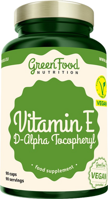 GreenFood Nutrition Vitamin E-D-Alpha Tocopheryl 90 kapsúlVšetko o produkteDoplňujúce informácieHodnotenie produktuVitamín E je skupina ôsmich rôznych zlúčenín, ktoré zahŕňajú tokoferoly a tokotrienoly. D-alfa-tokoferyl je prírodná forma vitamínu E a považuje sa za najúčinnejšiu biologickú formu tohto vitamínu. Pre svoje vlastnosti sa široko používa v potravinových doplnkoch.