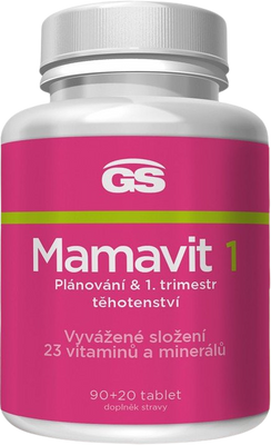 GS Mamavit je výživový doplnok pre ženy plánujúce tehotenstvo a tehotné ženy v prvom trimestri. Vyvážená kombinácia 23 vitamínov a minerálov + vysoká dávka kyseliny listovej v prírodnej forme. Viac informácií