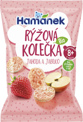 Ryžové kolieska Hamánek Jablko&Jahoda 35g. Jemná a pritom chrumkavá štruktúra doplnená o chuť šťavnatého ovocia predstavuje ideálnu desiatu pre malých hladovcov. Viac informácií