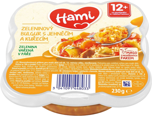 Hami Príkrm v tanieriku Zeleninový bulgur s jahňacím a kuracím 230 gVšetko o produkteDoplňujúce informácieHodnotenie produktuVysokokvalitné suroviny sú v detskej výžive Hami mimoriadne dôležité. Šťavnaté mäso pochádza zo starostlivo kontrolovaných surovín. Lahodný príkrm s denným odporúčaným množstvom zeleniny ( *podľa odporúčaní pediatrov) pre malé brušká v praktickom tanieriku.
