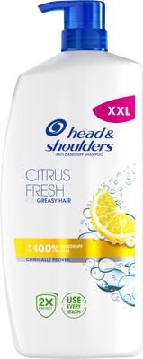 Head & Shoulders Citrus Fresh, Šampón proti lupinám 800 mlVšetko o produkteDoplňujúce informácieHodnotenie produktuŠampón Head & Shoulders Citrus Fresh proti lupinám na mastné vlasy. Pôsobí aj proti odolným lupinám. Šampón na každodenné použitie pre mužov a ženy so sviežou citrusovou vôňou a zložením Microbiome Balance, ktoré sa zameriava na hlavnú príčinu lupín a udržiava vyvážený mikrobióm pokožky hlavy. Pôsobí proti viditeľným aj neviditeľným lupinám tým, že uvoľňuje 2-krát viac ochranných zložiek, ktoré sa dostávajú do pórov a zabraňujú návratu tvrdohlavých lupín. Má klinicky overené, dermatológmi testované zloženie s vyváženým pH, ktoré zanecháva pokožku hlavy a vlasy čisté a svieže.