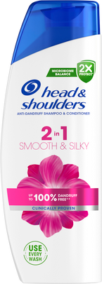 Head & Shoulders Smooth & Silky 2in1, Šampón proti lupinám 330 mlVšetko o produkteDoplňujúce informácieHodnotenie produktuŠampón proti lupinám Head & Shoulders 2v1Smooth & Silky pre všetky typy vlasov a všetky typy pokožky hlavy. Pôsobí aj proti odolným lupinám. Šampón na každodenné použitie pre mužov a ženy so zložením Microbiome Balance, ktoré sa zameriava na hlavnú príčinu lupín a udržiava vyvážený mikrobióm pokožky hlavy. Pôsobí proti viditeľným aj neviditeľným lupinám tým, že uvoľňuje 2× viac ochranných zložiek, ktoré sa dostanú do pórov a zabránia návratu tvrdohlavých lupín. Tento šampón 2 v 1 obsahuje o 25 % viac ošetrujúcich zložiek ako bežný šampón Head & Shoulders,je klinicky overený, dermatologicky testovaný a má vyvážené pH.