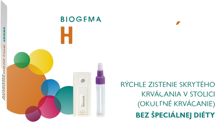 Biogema Hemoglobín test na okultné krvácanieVšetko o produkteDoplňujúce informácieHodnotenie produktuRakovina hrubého čreva a konečníka je jedným z najčastejších druhov onkologických ochorení. Jej výskyt neustále stúpa a postihuje najčastejšie ľudí vo veku nad 45 rokov. U 10 % populácie sa vyskytujú polypy – výrastky v sliznici čriev a v konečníku. Až 1 % z nich sú zhubné a polypy väčšie než 0,5 cm stálym dráždením trvale krvácajú. Varovným signálom na zistenie ochorenia je krv v stolici, ktorá je v počiatočnom štádiu okom nepostrehnuteľná. Stanovenie ľudského hemoglobínu pri tomto skrytom (okultnom) krvácaní v stolici využitím tohto testu je jednoduchým a spoľahlivým skríningovým vyšetrením kolorektálnych karcinómov – rakoviny čriev a konečníka.