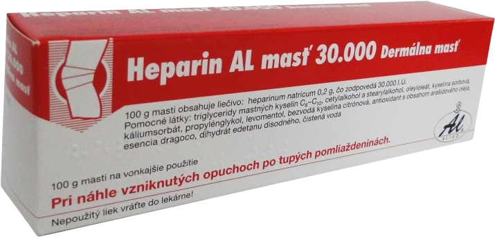 Heparin AL masť 30 000 sa používa ako podporná liečba pri tupých poraneniach (pomliaždeniny/ modriny). Viac informácií