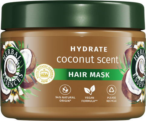 Herbal Essences Coconut Scent Hydrate Mask pomáha vyživovať veľmi suché vlasy. Maska vám dodá vnútorný pocit rovnováhy a zahltí vaše zmysly príjemnou kokosovou vôňou. Viac informácií